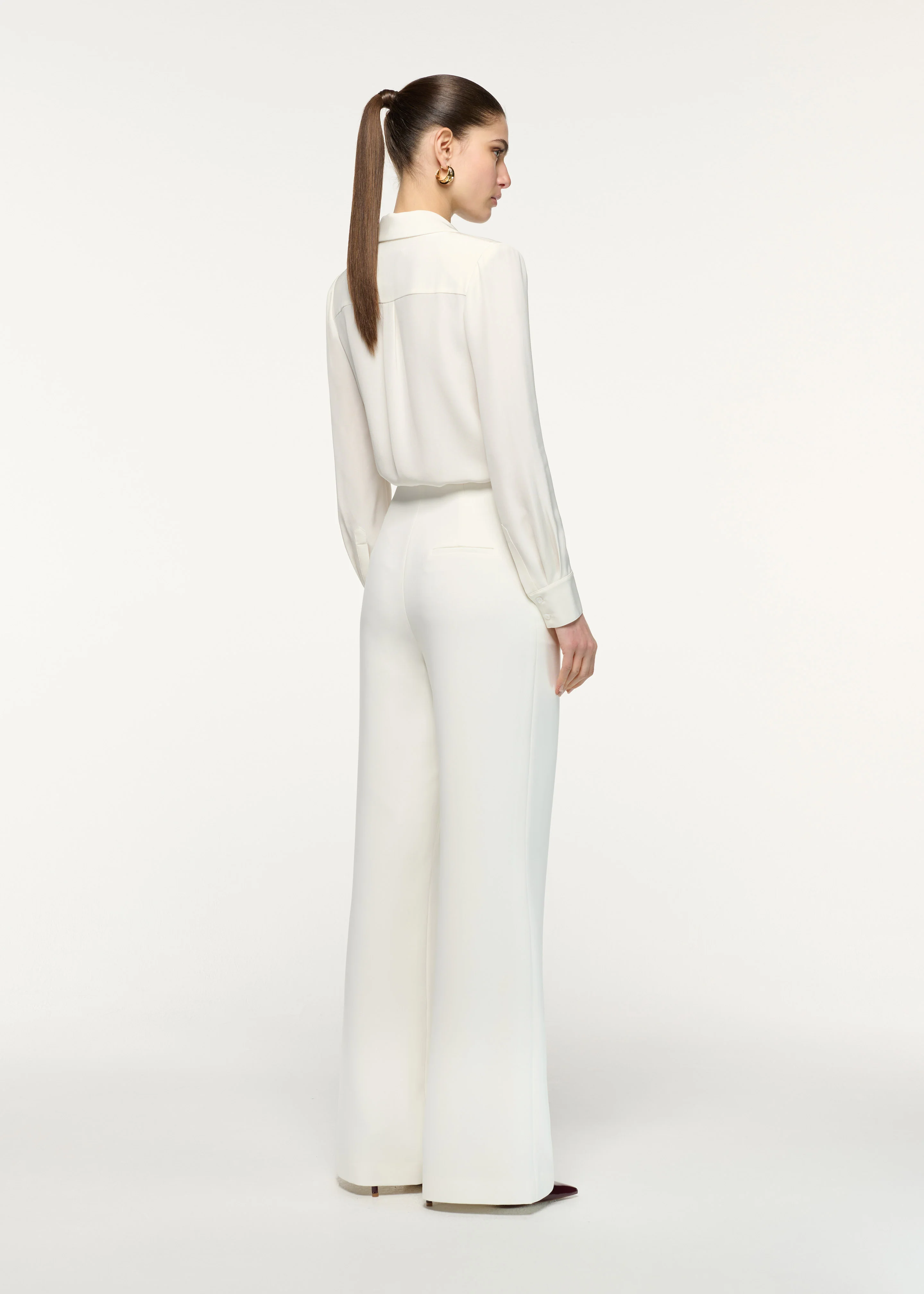 Softly, softly, this V-neck blouson bodysuit is crafted from cream silk for effortless layering. Pair with tailored trouser and sleek midi skirt for day-to-night ensembles.